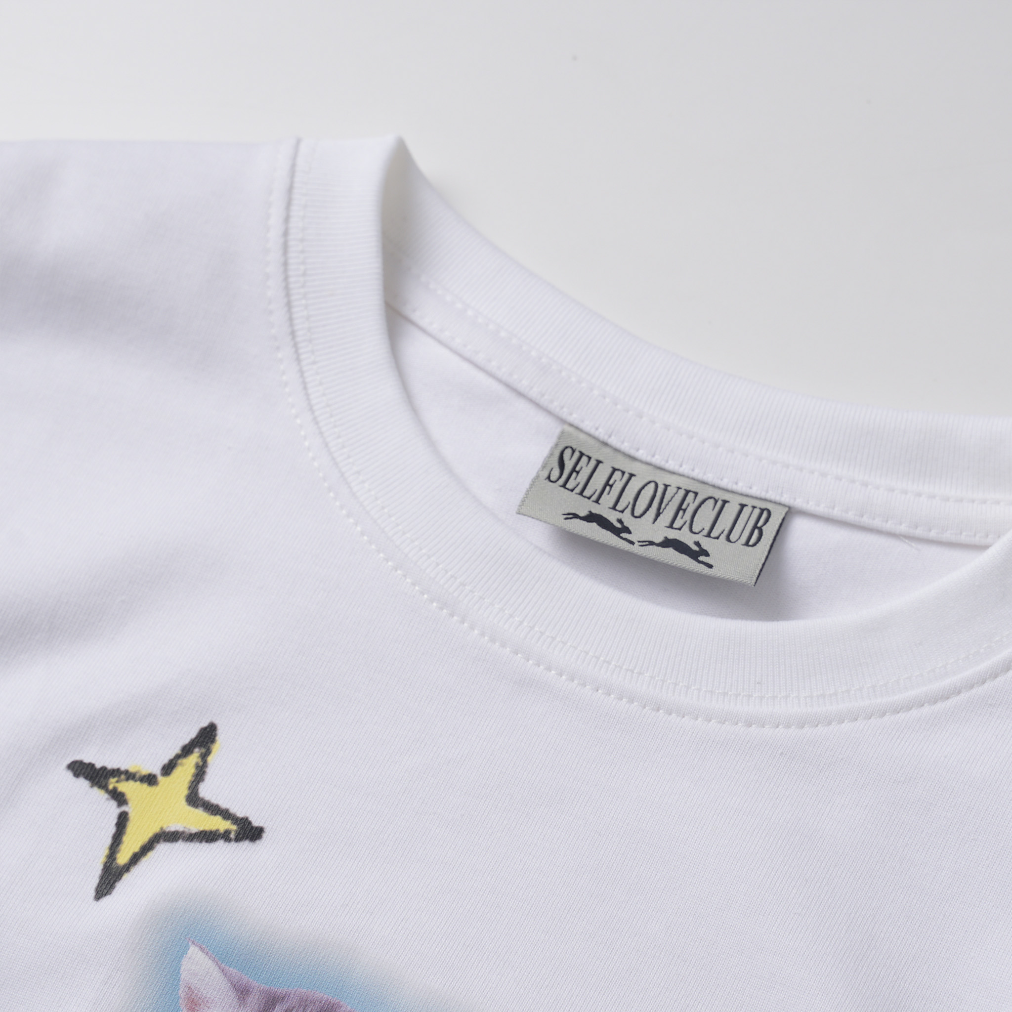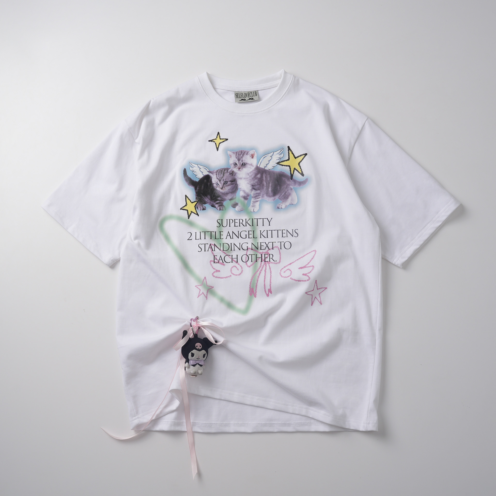 - Oversized short-sleeve T-shirt. 100% Cotton. Colorful printed graphic. Styling metal eyelet. - White - Freesize
